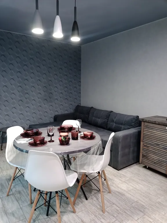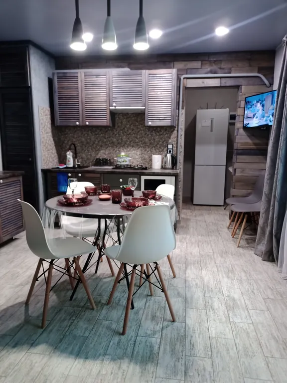 Столовая, ванная комната, прихожая, жк телевизор с яндекс тв, кухня оборудованная всем необходимым инвентарём и посудой для приготовления и приема пищи, газовая варочная плита, электрический чайник, микроволновка, холодильник.