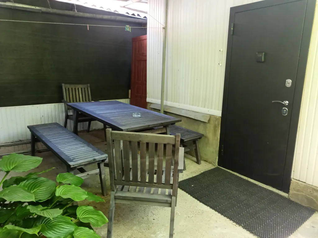 Парковочное место с видеонаблюдением для машины. Свой дворик с местом для курения.