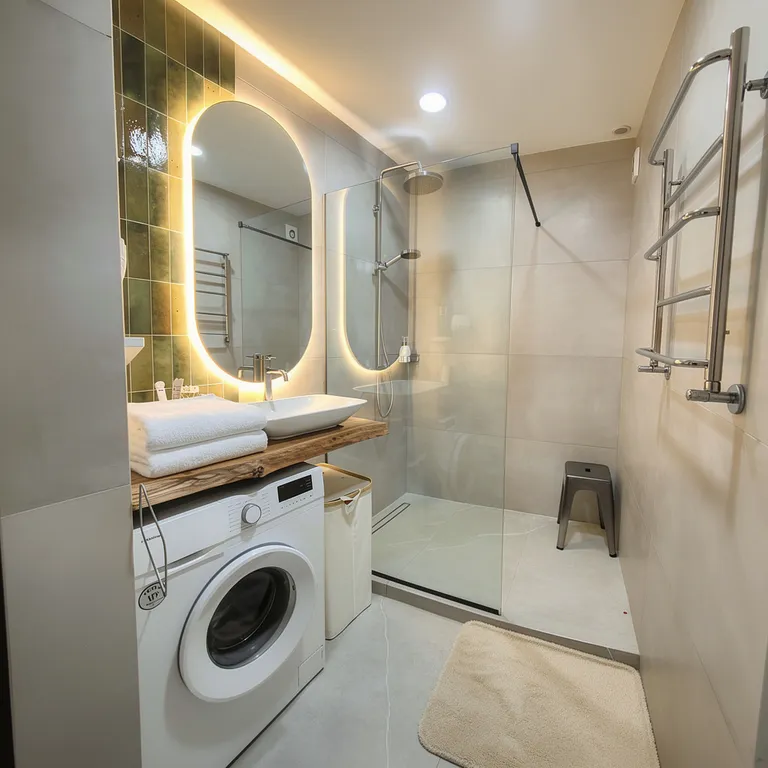 Для вашего удобства есть стиральная машина, утюг и сушилка — идеально для длительного проживания.