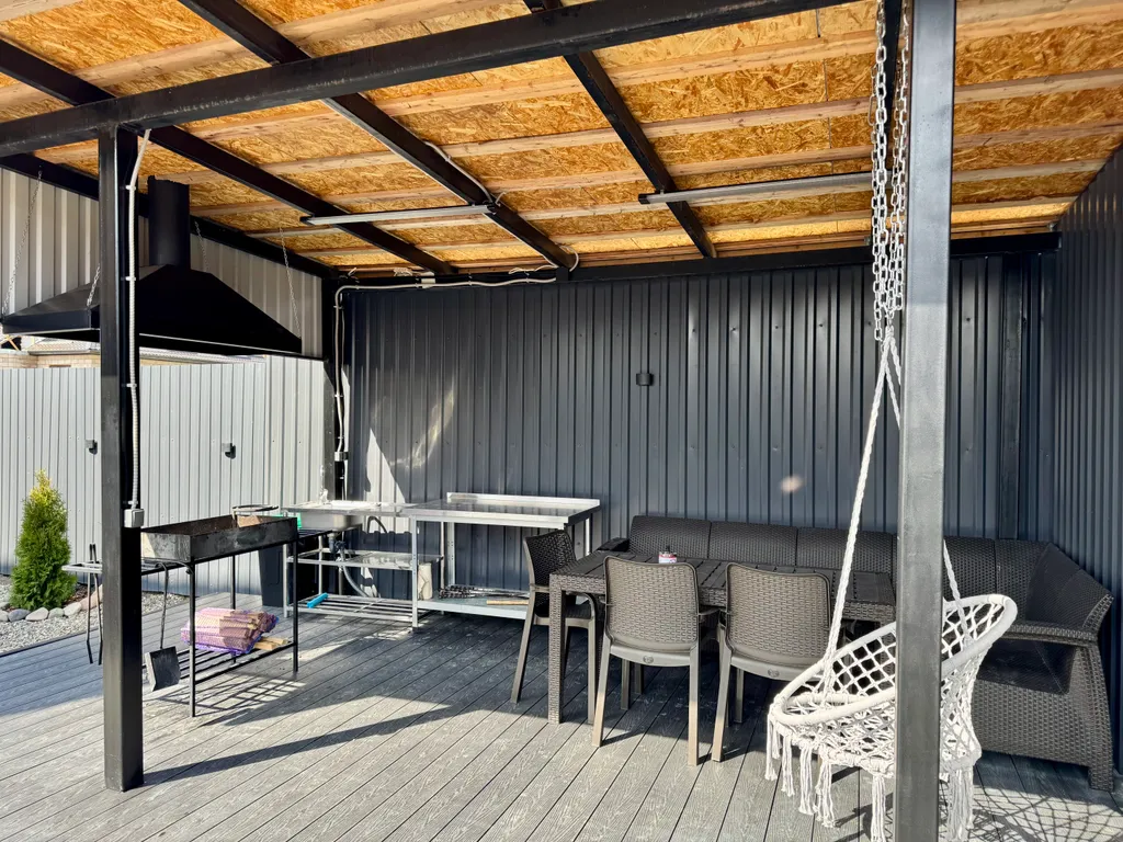 Крытая мангальная зона со всем необходимым для приготовления на огне — удобно в любую погоду.