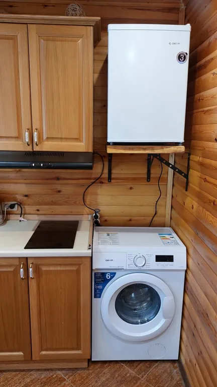 - Оборудованная кухня: холодильник, мультиварка, СВЧ, электрический чайник, электрическая плита, вытяжка, стиральная машина, посуда и столовые приборы для вашего удобства.